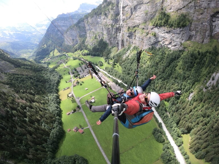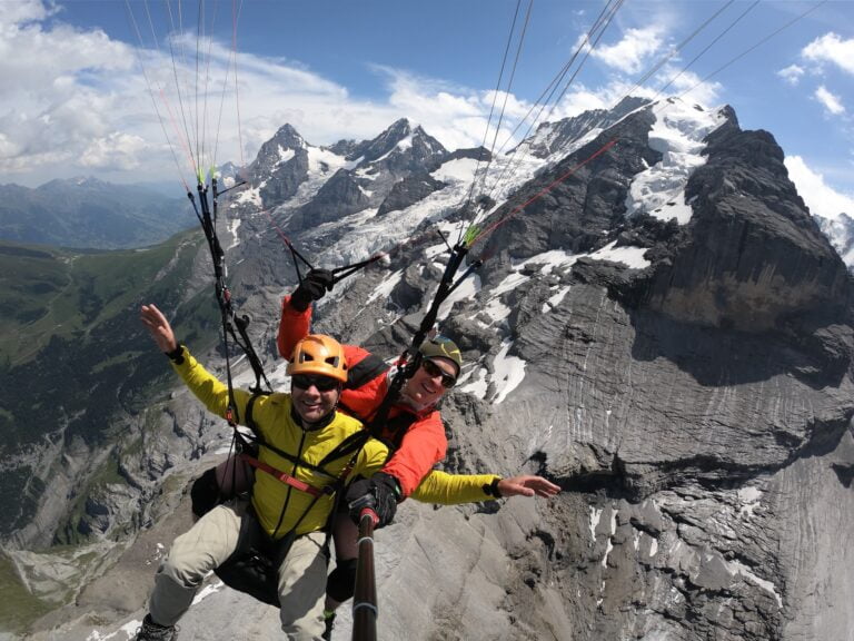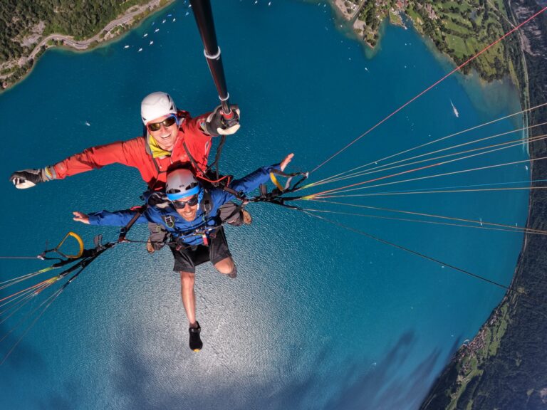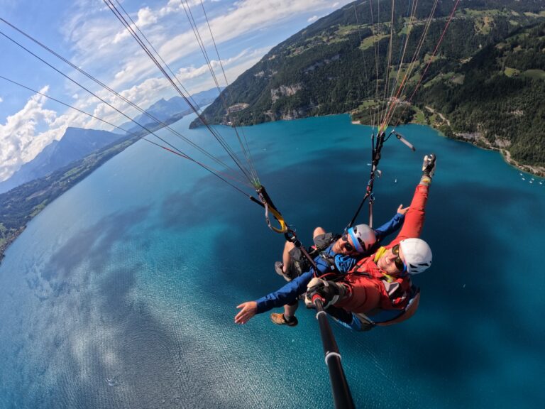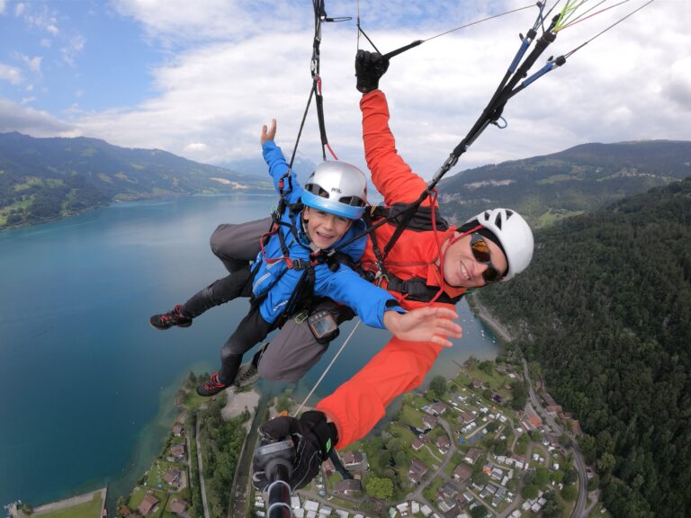 Das gemeinsame Fliegen an einem Tandemgleitschirm ist ein unvergessliches Erlebnis. Die Leichtigkeit des Fliegens vermittelt ein Gefühl der ultimativen Freiheit.